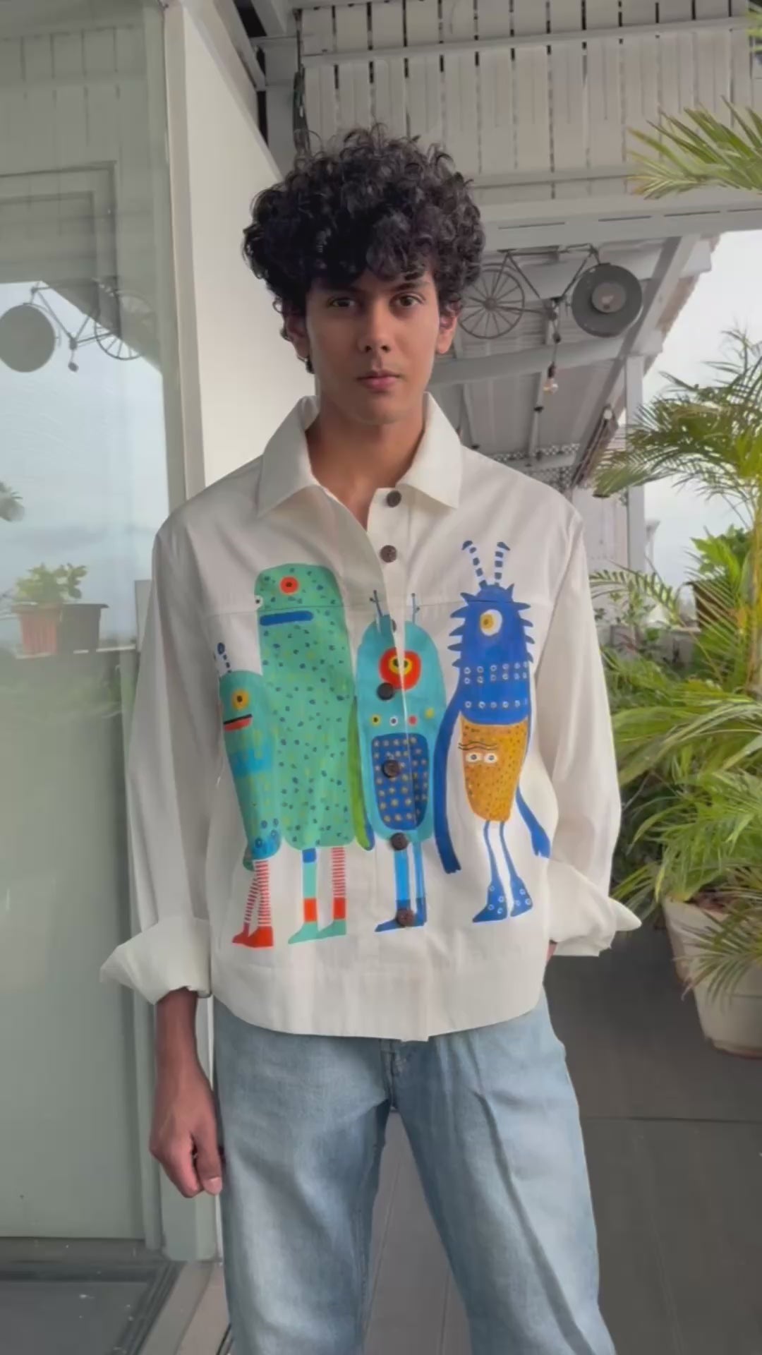 Meet the shirt that’s as bold and quirky as your personality. Painted by hand with a playful family of colorful creatures, this cotton shirt is all about fun, individuality, and standing out. Think of it as a piece of art you can wear every day.